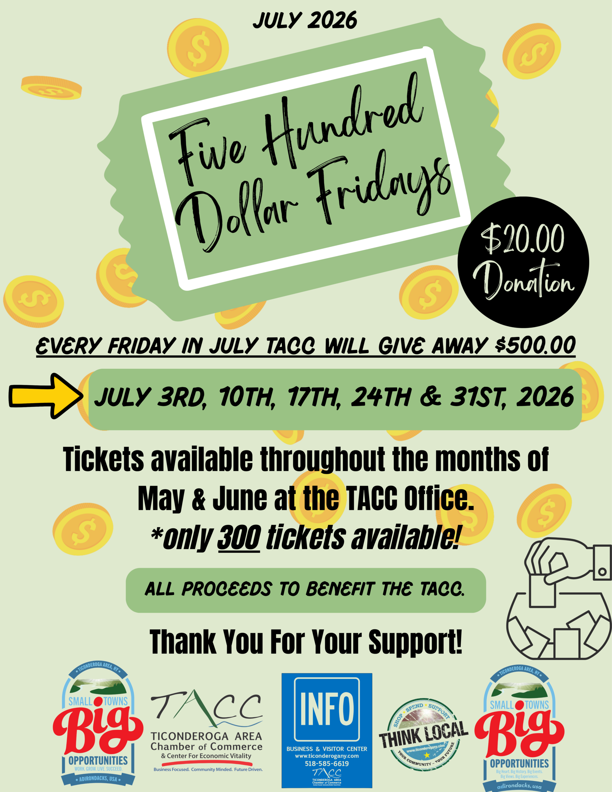 The Ticonderoga Area Chamber of Commerce (TACC) is pleased to remind Members and the Ticonderoga Are...
